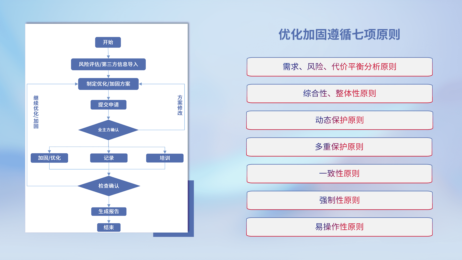 通过专业的法律咨询解读、、、、合规架构体现、、差异化解决方案、、、、测试实施支持等服务,,为客户量身打造等保合规体系。。。