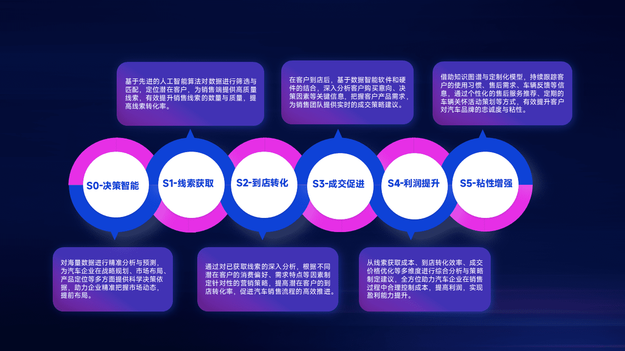 通过拓宽潜在客户来源、、、、优化线索分配并提高到店转化率,,,,以增强销售效率。。。同时,,利用线索数据不断优化分析模型,,,有效提升转化率,,扩大营销影响力。。。